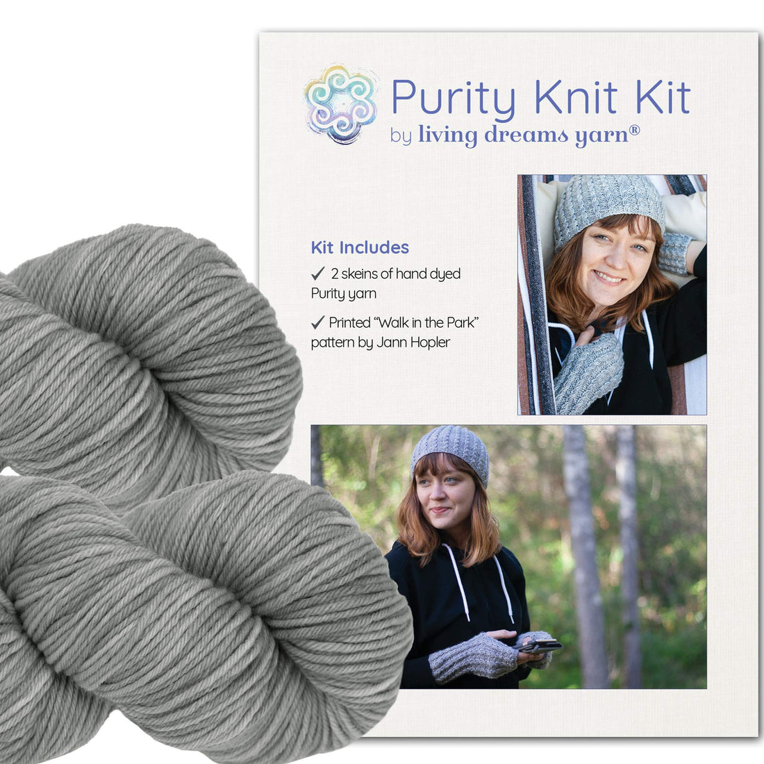 Knit Kit: Faux Cable Hat & Gloves, Walk In The Park - Pebble