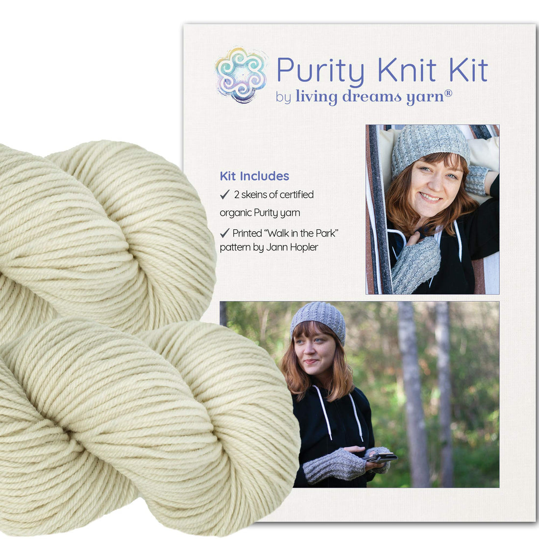 Knit Kit: Faux Cable Hat & Gloves, Walk In The Park - Natural White