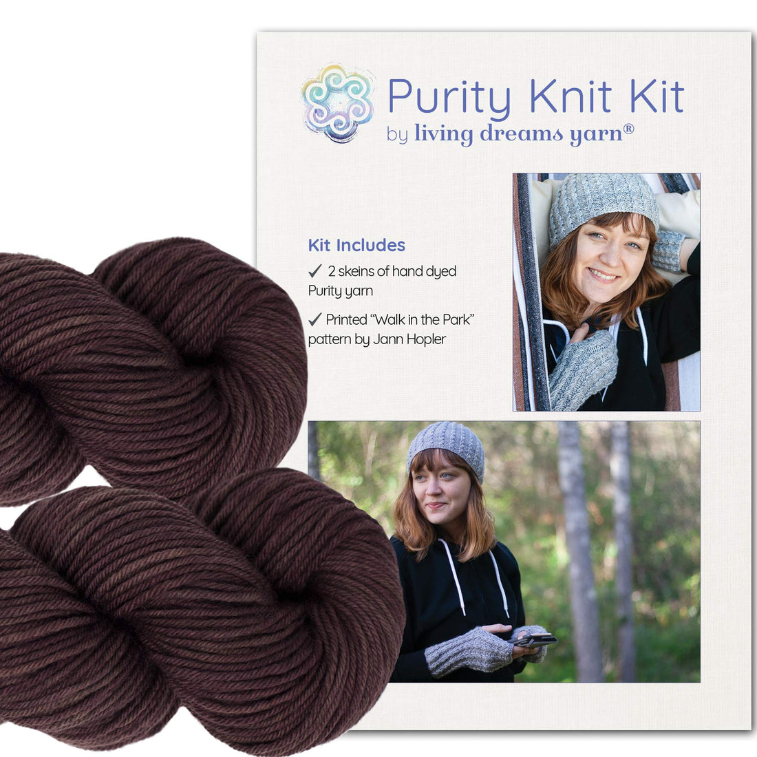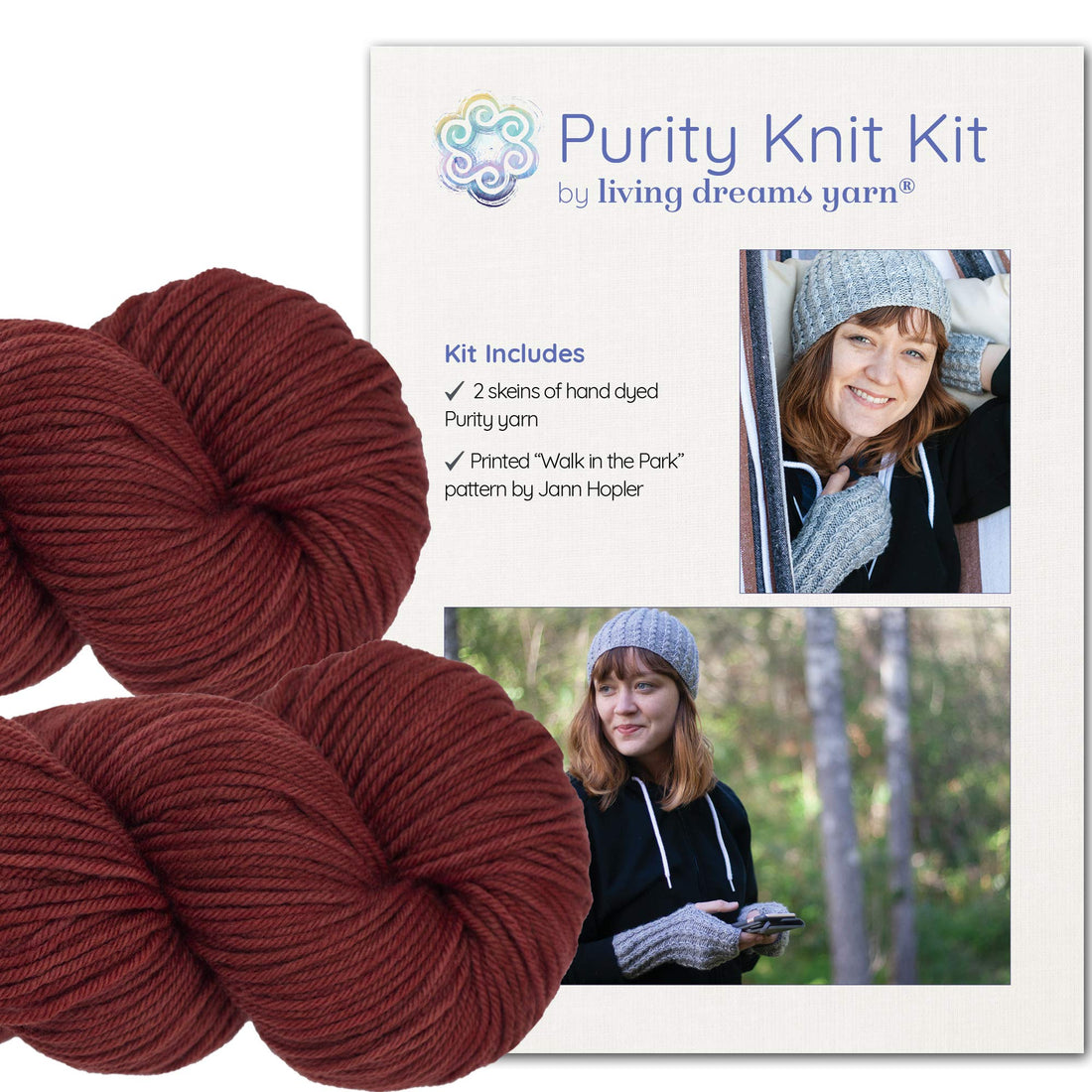 Knit Kit: Faux Cable Hat & Gloves, Walk In The Park- Mahogany