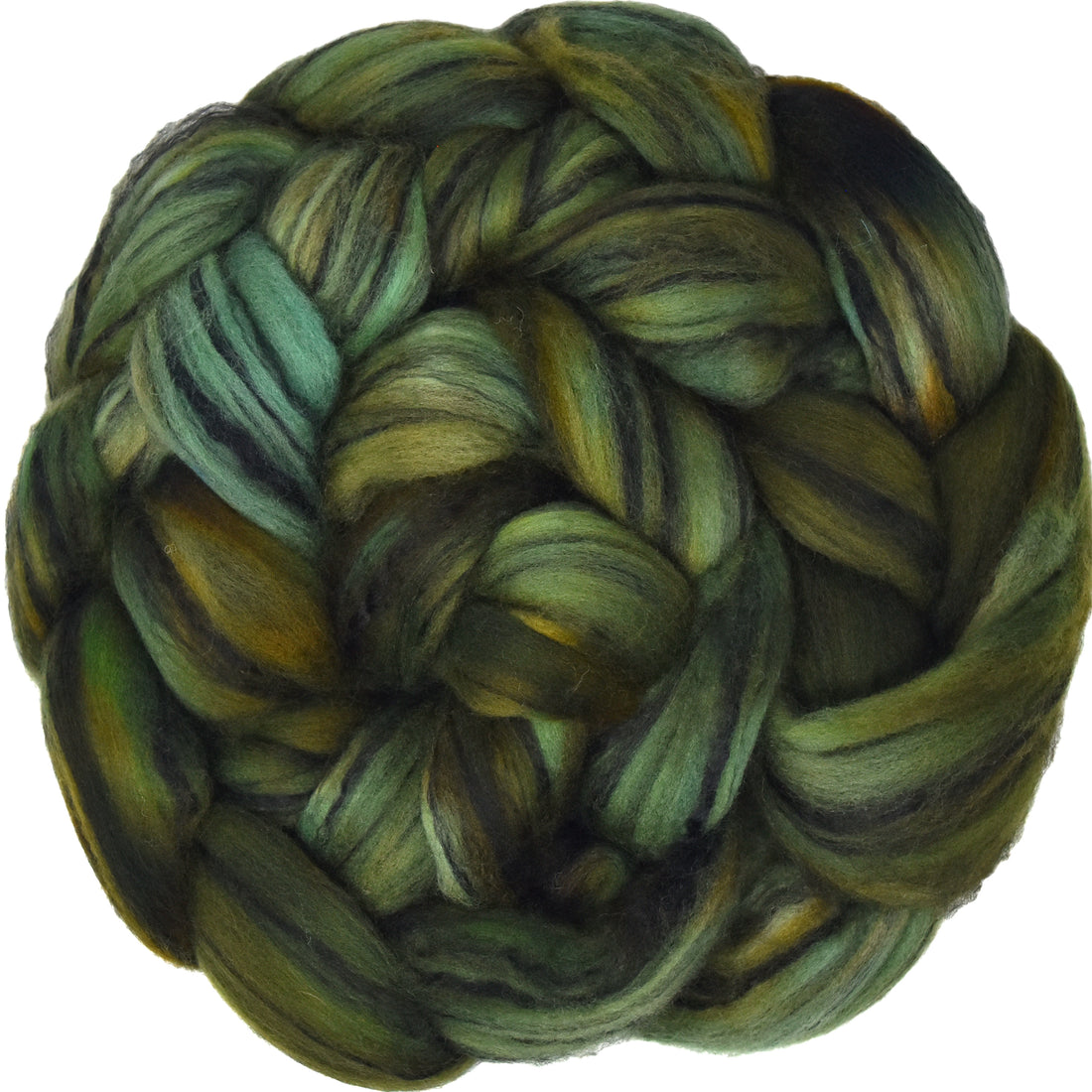 Merino Tencel Roving, Hand Dyed - Bronze Green