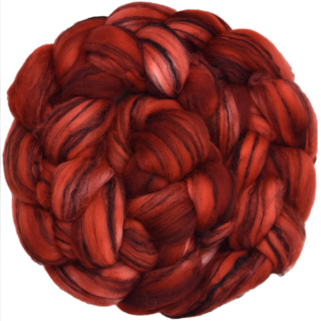 Merino Tencel Roving, Hand Dyed - Mahogany