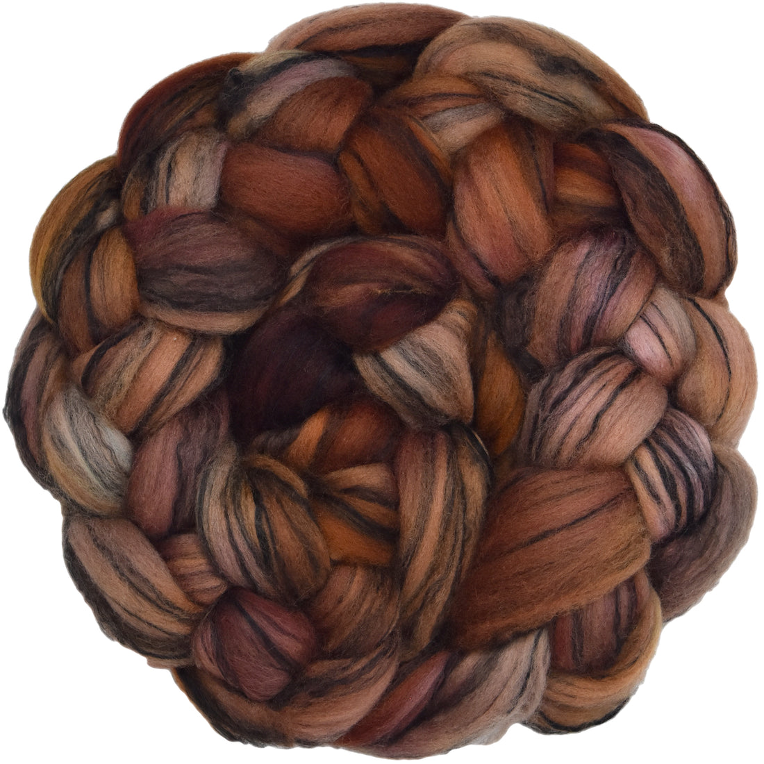 Merino Tencel Roving, Hand Dyed - Brown Rust