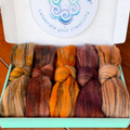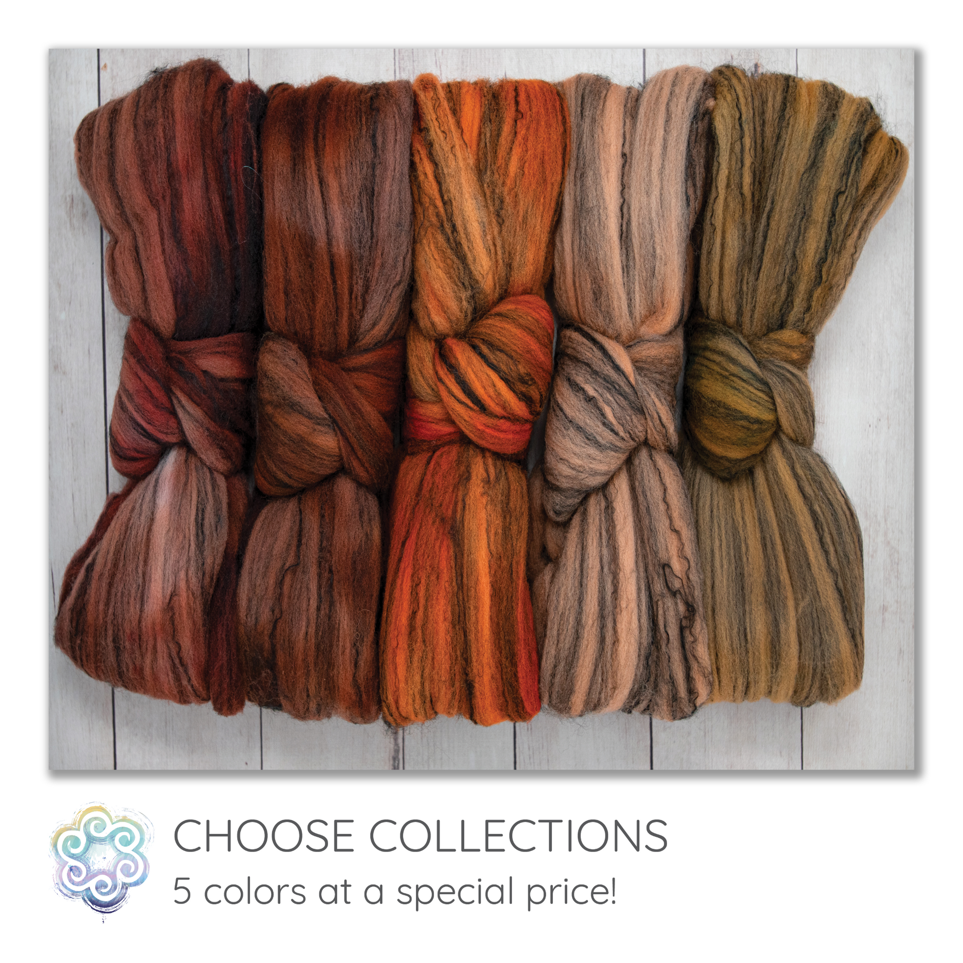 Spinners and felters adore our unique, hand dyed, super soft Merino blends. This collection features fife exciting colors in a single package - so you don't have to decide!