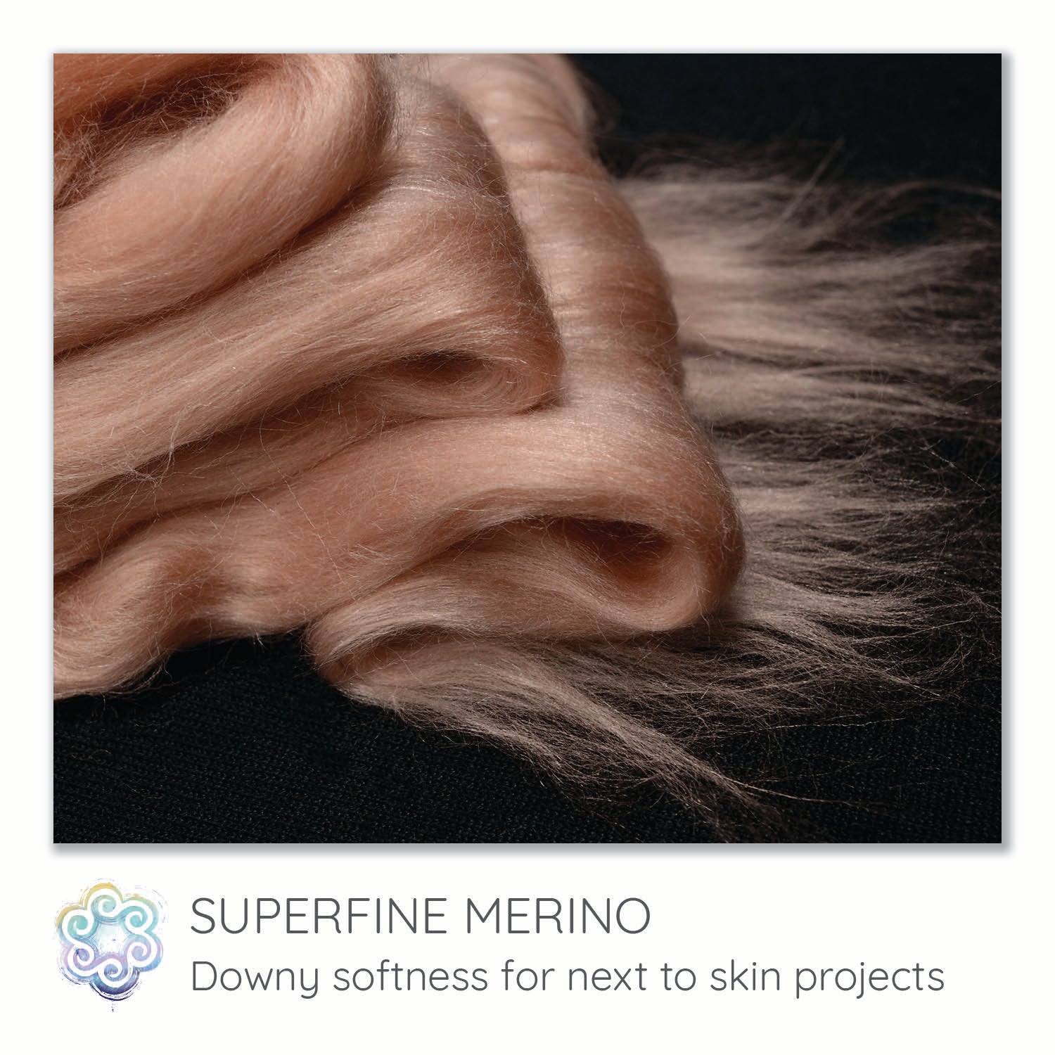 A true spinners delight: Top Notch superfine Merino is not only incredibly soft but also features coloring that offers endless creative spinning possibilities.