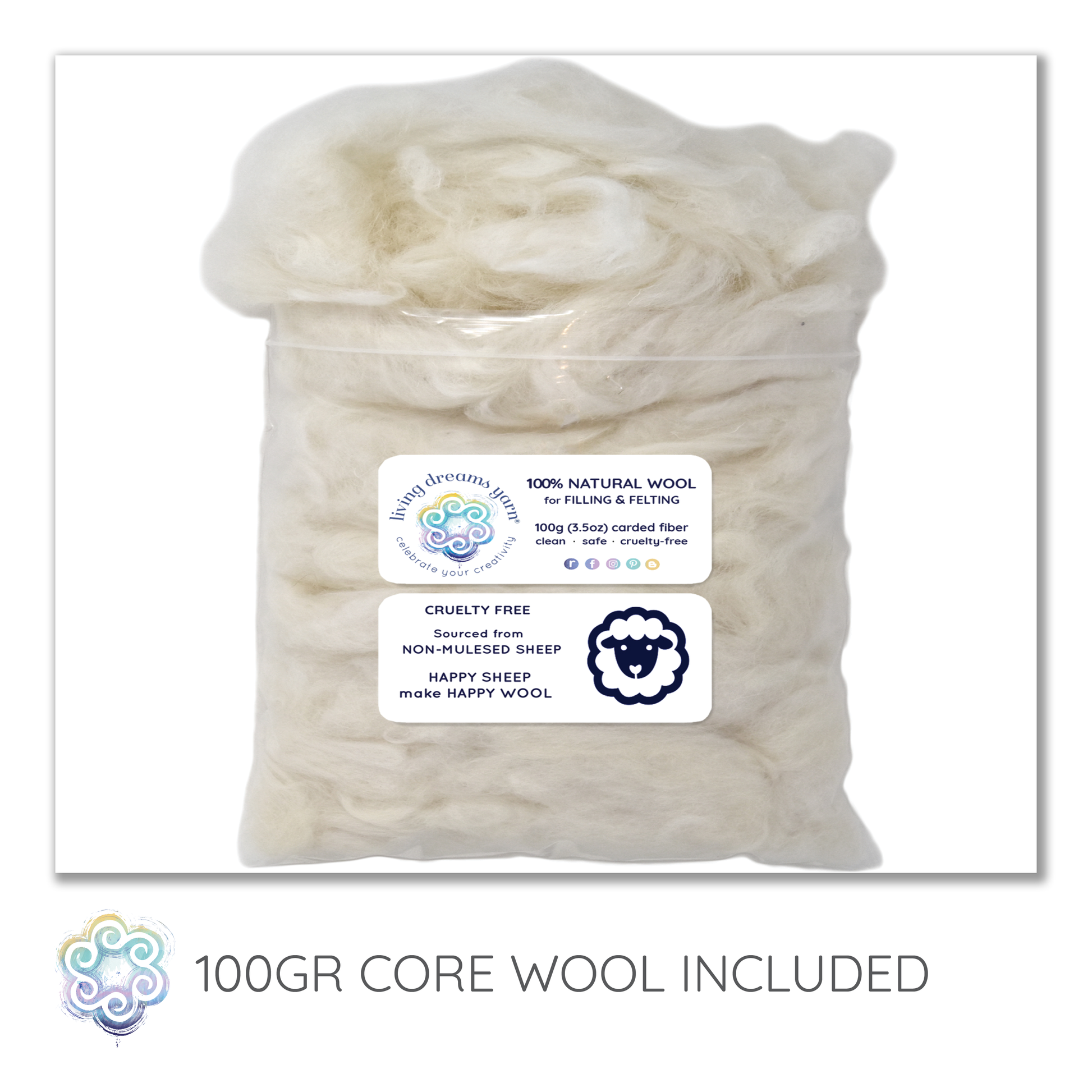 WOOL: The Deluxe Kit comes with 54 brilliant rainbow colors of premium felting wool - enough for dozens of creative projects! We also included 100g of clean carded core wool to make the body/core of your felted object before dipping into your precious colors (reserve them for the surface/outside of your object!).