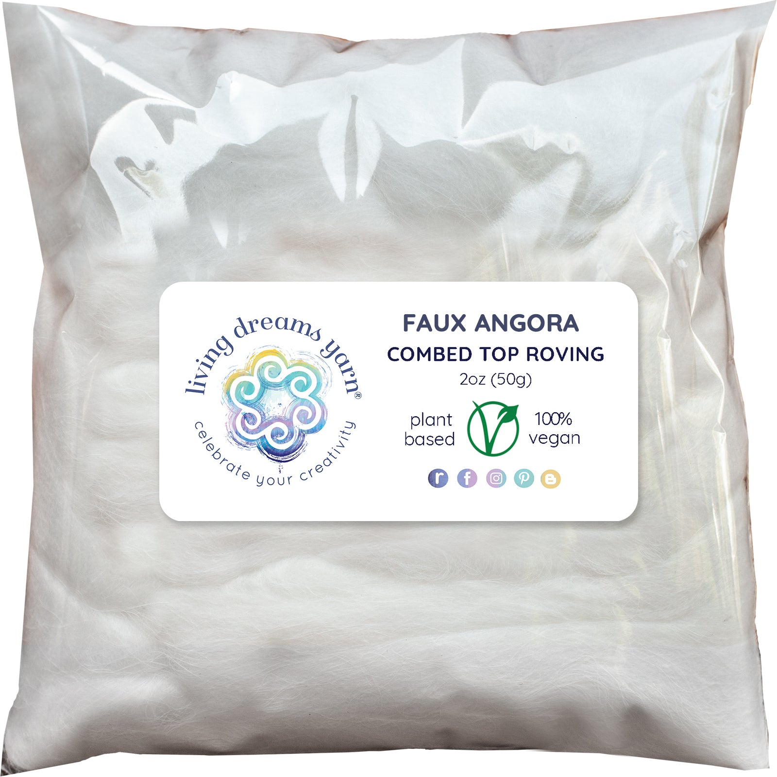Snow white and downy: All the softness of real angora rabbit fur without the animal fiber! Our faux angora combines nylon and other man-made vegan fibers for an ultra luxurious texture. Handles and feels just like the original animal fiber.